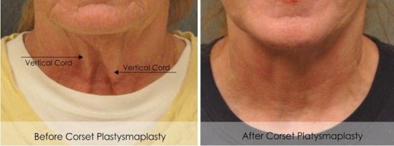 Other factors contribute to a sagging neck such as loss of skin elasticity and fat accumulation. Submental liposuction (suctioning excess fat from the neck) and laser rejuvenation to improve skin quality may be recommended in addition to a corset platysmaplasty.