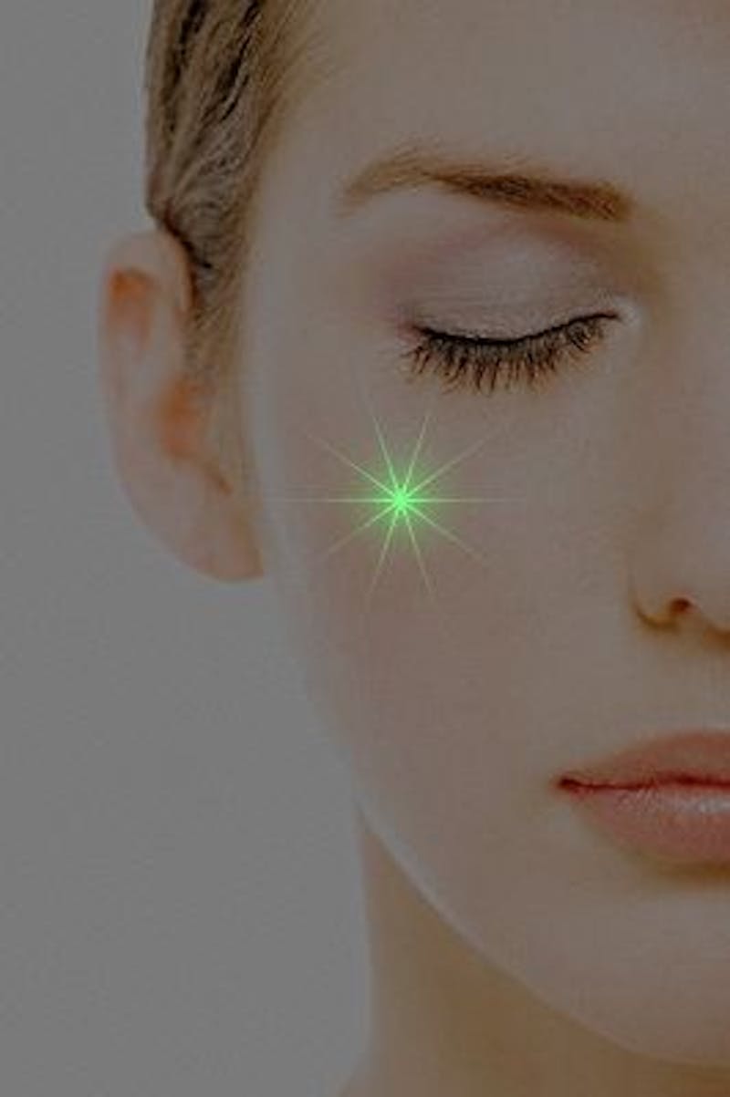 The KTP (potassium titanyl phosphate) Laser (Figure 1) is also a green laser. It differs from the Laser Genesis in that instead of a broad treatment tip, the KTP laser has a very narrow and precise laser beam which is less than a millimeter wide. Distinct facial vessels are easily targeted by tracing along the top of the vessel.